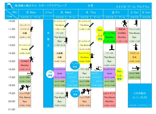 当館6階、7階にあるスポーツクラブ「ウェーブ」には、プールとジムがあります。