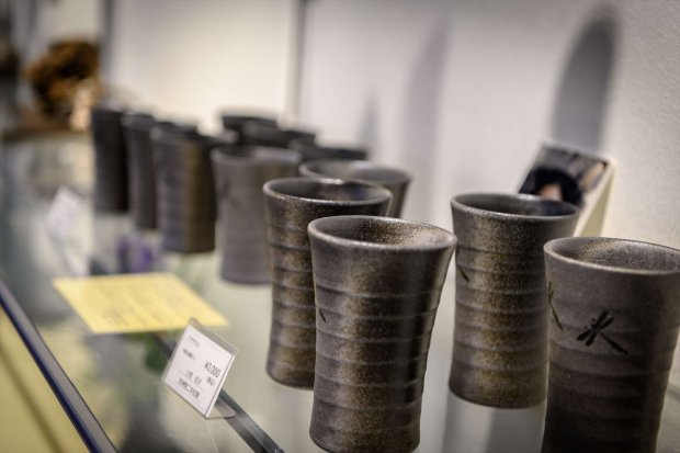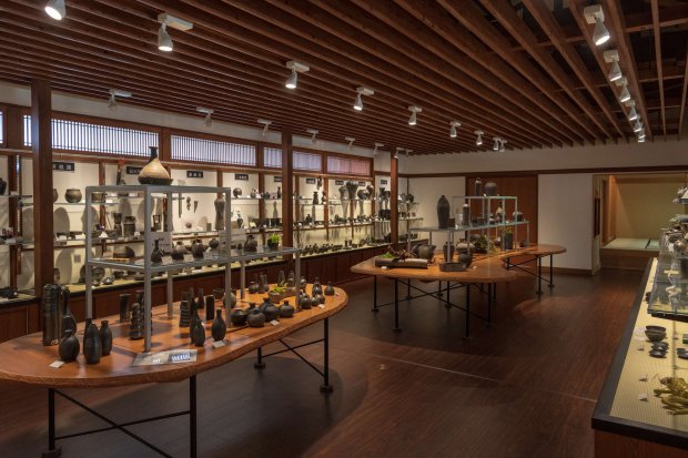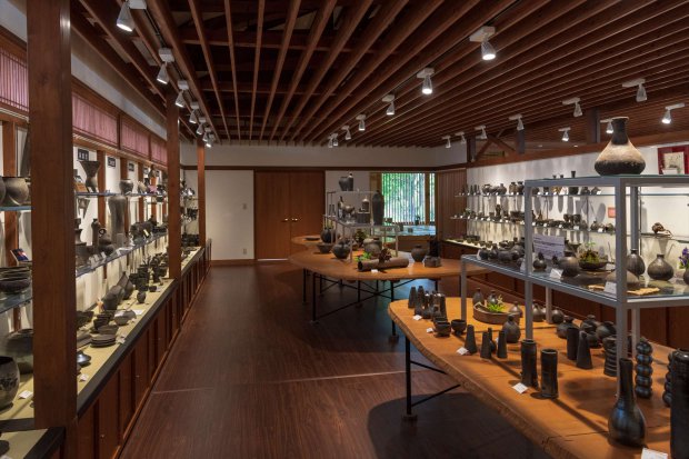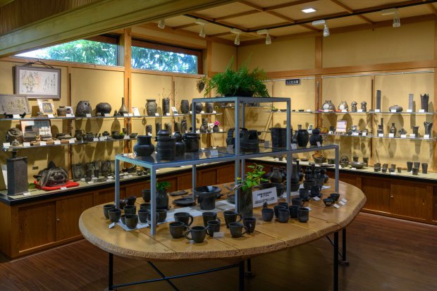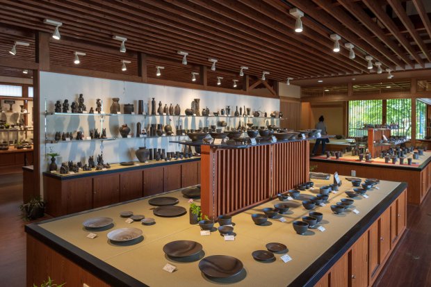 ゆったりとした広い館内には作品と陶工の写真が展示されており、作り手の思いを感じながら作品を手に取り、ゆっくりと選ぶことができます。